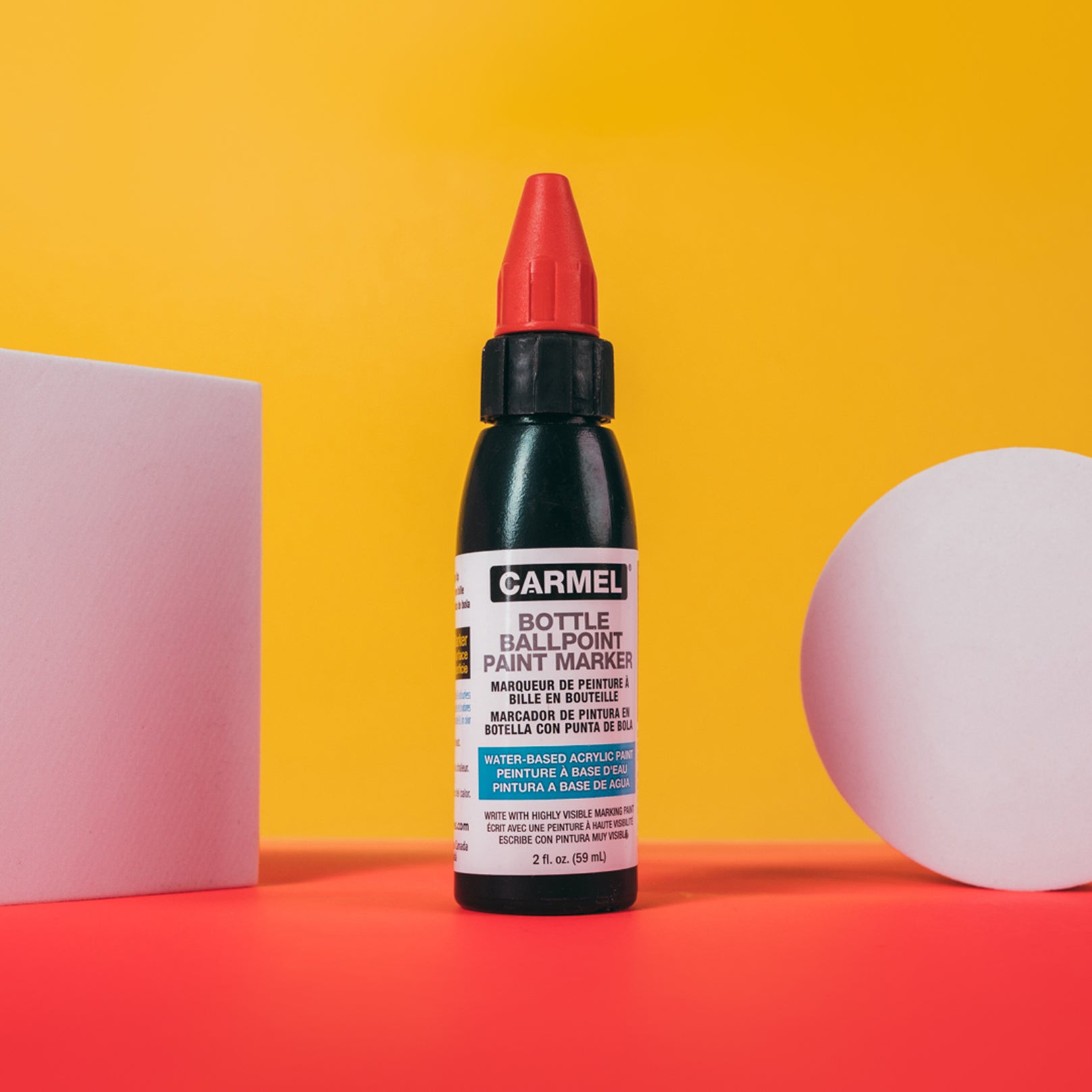 Carmel Acrylic Bottle Ballpoint Paint Marker also known as a roller ball paint marker, is an excellent all-in-one arts and crafts tool that consists of a squeezable bottle that applies water-based paint through a press-activated metal ballpoint tip.