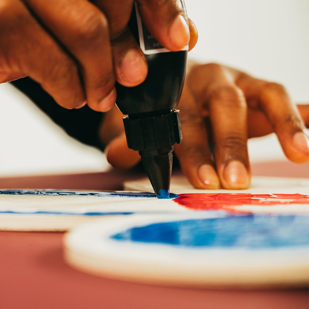 Carmel Bottle Ballpoint Paint Marker, also known as a roller ball paint marker, is an excellent all-in-one arts and crafts tool that consists of a squeezable bottle that applies paint through a press-activated metal ballpoint tip.