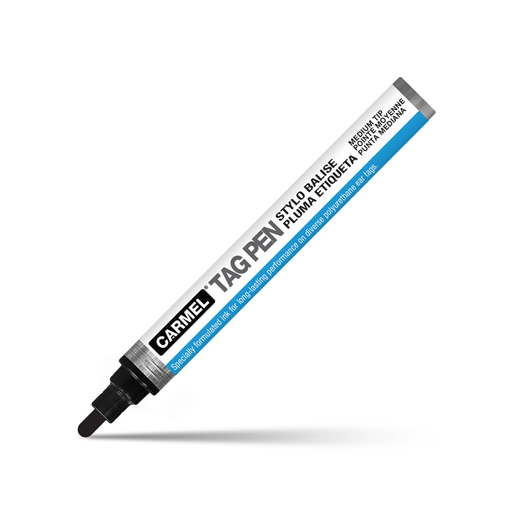 Este marcador activado por la válvula aplica tinta negra especialmente formulada a las etiquetas de oído de ganado de plástico. La tinta es muy duradera, resistente a la intemperie y es adecuada para todos los climas.