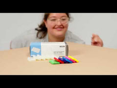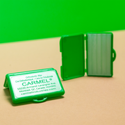 La cera de alivio de ortodoncia de Carmel viene en un paquete de polipropileno verde que contiene tiras de cera formuladas con menta, vitamina E o una mezcla de menta, aloe vera y vitamina E.