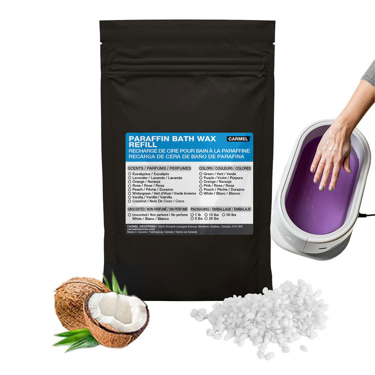 Carmel Paraffin Bath Wax es una cera especialmente formulada para baños de parafina. Los salones y spas lo utilizan como tratamiento suavizante de la piel por sus propiedades humectantes y suavizantes. Este producto cosmético viene en aromas deliciosos como vainilla, eucalipto y lavanda y hermosos colores como morado, rosa y naranja. Esta cera está disponible en blanco inodoro si se prefiere, y la parafina blanca está disponible en todas las opciones de aromas disponibles.