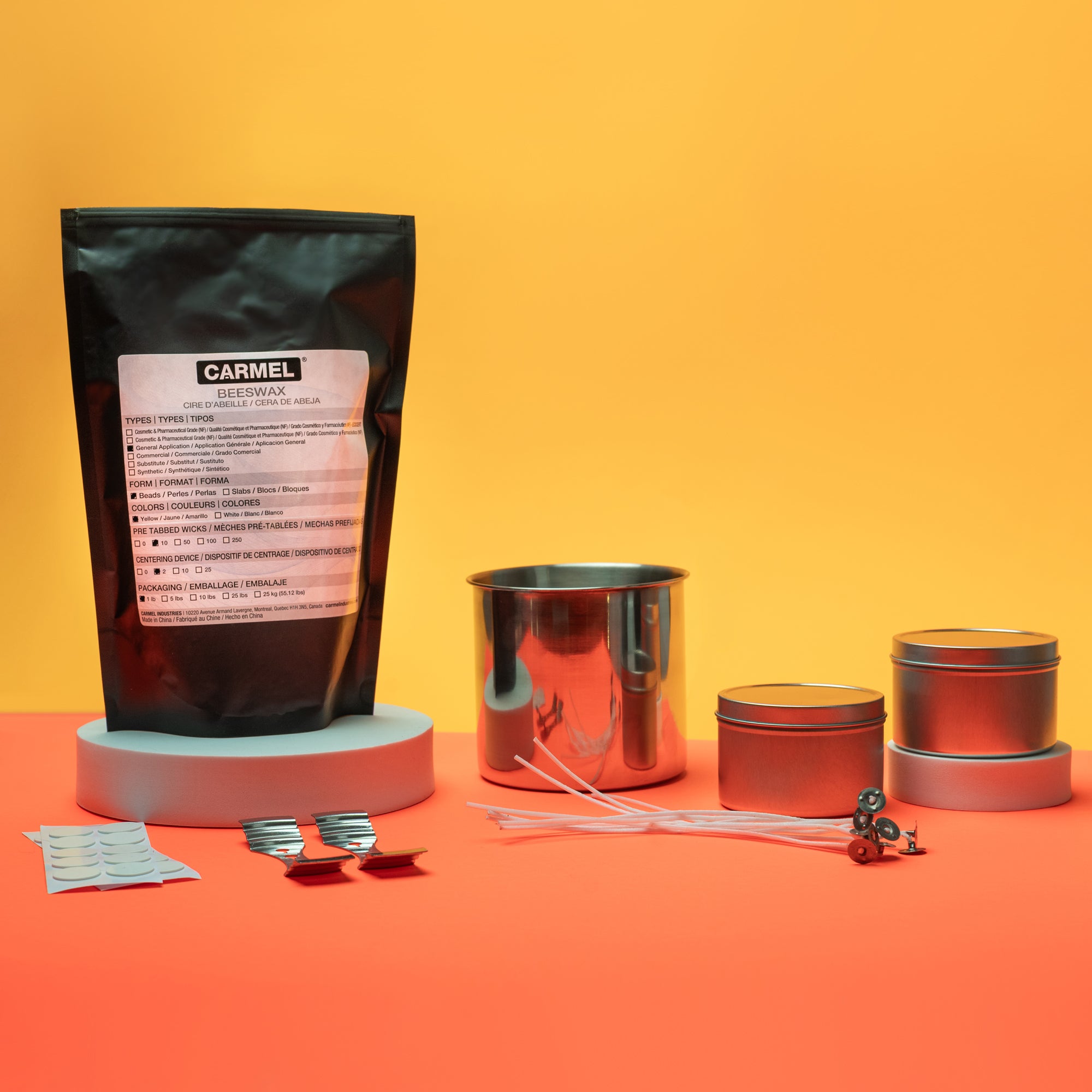 La cire d'abeilles pure du carmel est entièrement naturelle, triple filtrée, faite sans additives ou ingrédients synthétiques, et maintient son parfum naturel et doux. Les mèches sont également pré-tournées, contenant une base métallique pour les aider à se tenir debout. Les autocollants de fixation sont destinés à fixer la base des mèches pré-tournées (mèche + base métallique) au fond du pot. (Pots non inclus, nous recommandons des pots Mason.) Les dispositifs de centrage inclus aident à positionner la mèche pendant que la cire se refroidisse.