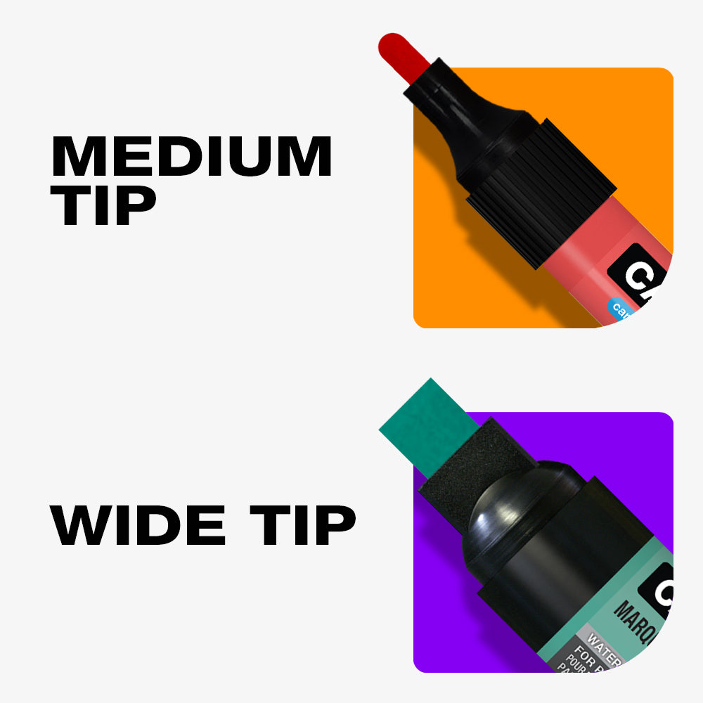 Les Marqueurs à craie liquide Carmel sont parfaits pour toutes les surfaces non poreuses, telles que les tableaux de menus, les tableaux blancs de salle de conférence, les vitrines de magasin et le métal. Ce marqueur applique une peinture à base d'eau, sans solvant. Effacez les marquages des surfaces lisses et non poreuses avec un chiffon humide. Ce marqueur à craie liquide est disponible en deux tailles, avec une pointe moyenne et une pointe large.