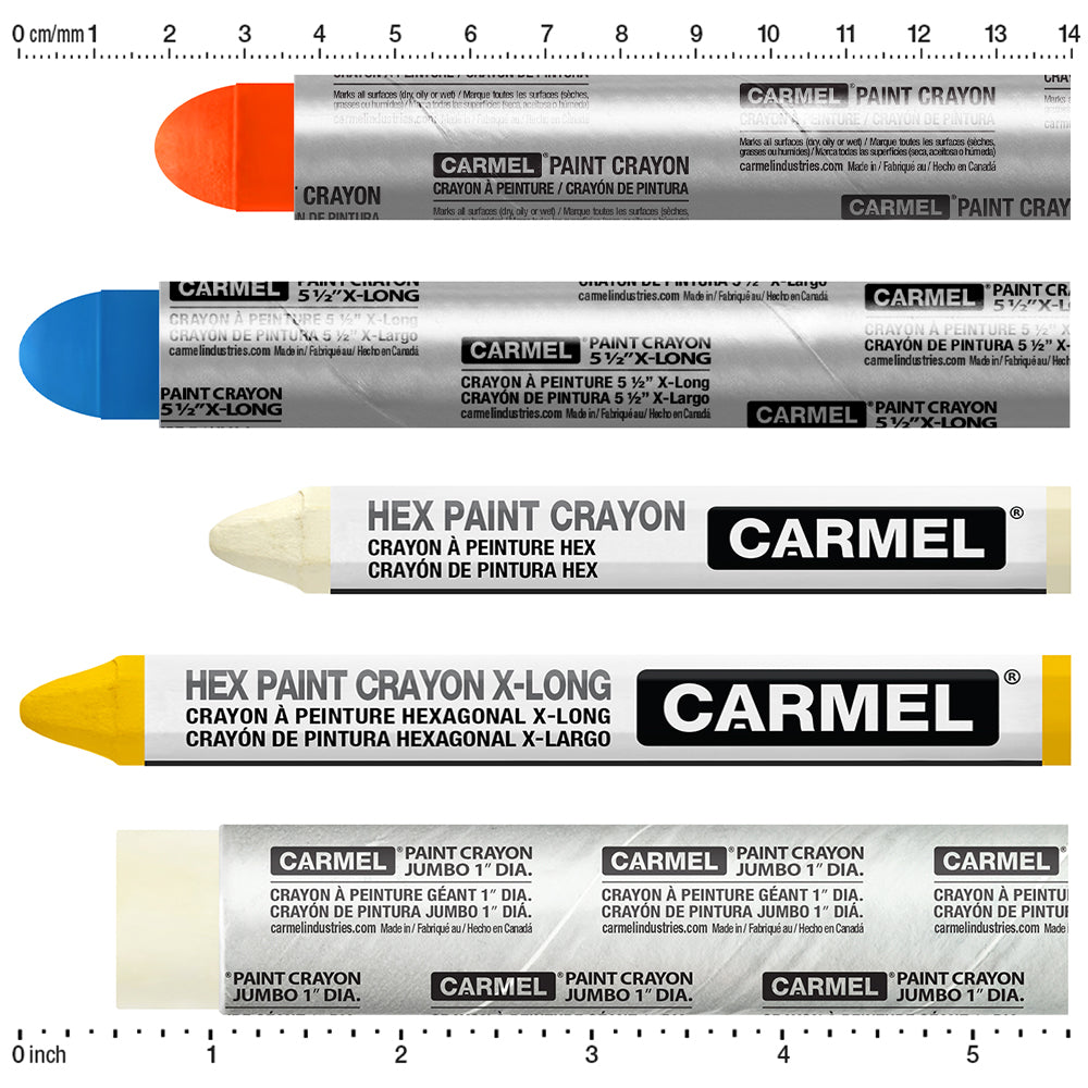 Carmel Paint Crayon applique des lignes claires de peinture fraîche et est Enveloppé dans du papier ou des manches en carton, Garder les doigts propres tout en marquant des surfaces lisses et texturées.