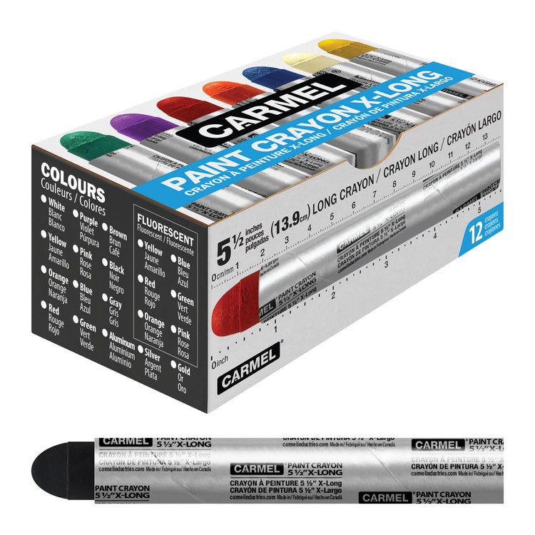 Carmel Paint Crayon applique des lignes claires de peinture fraîche et est Enveloppé dans du papier ou des manches en carton, Garder les doigts propres tout en marquant des surfaces lisses et texturées.
