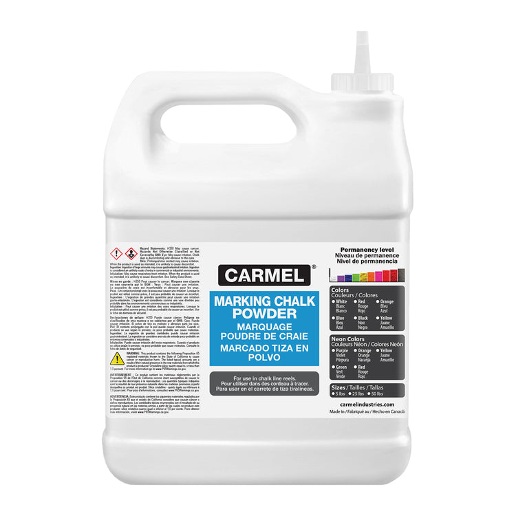 Carmel Marking Chalk Powder is specially formulated for use with chalk line reels. This chalk powder makes bold and solid lines that are easily detectable and won't blow away. This product works best on wood, concrete, and other hard porous surfaces.